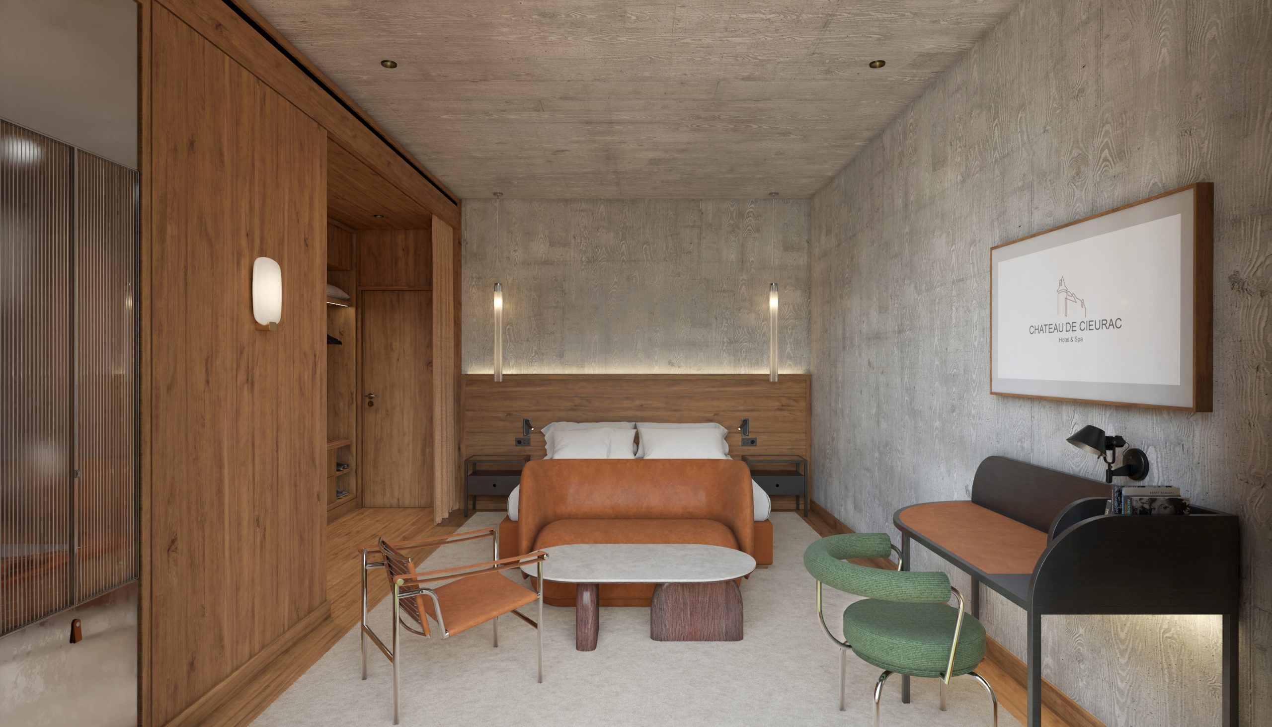 The project involves the creation of reception areas, a restaurant, and around a dozen suites within the existing château, taking full advantage of its spacious interiors, rich architectural details, and sweeping views over the valley.