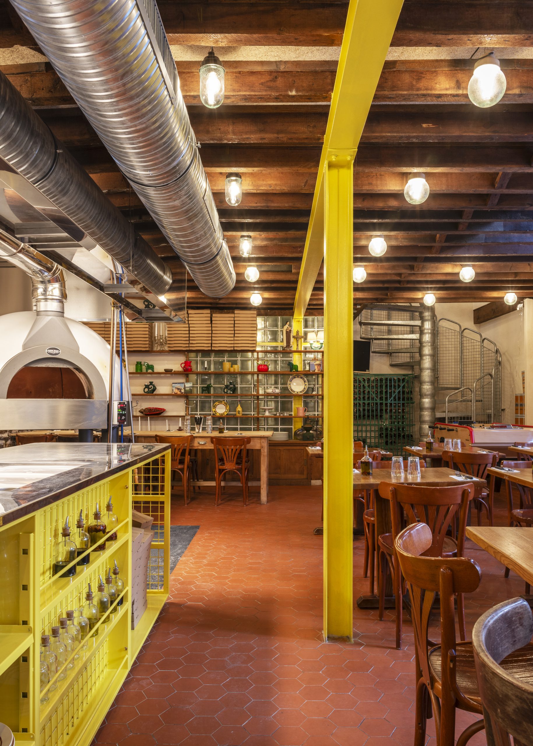 Des lieux inspirants, évoquant l’Italie, la famille, les amis, les vacances. Pièce maitresse d’une ambiance si particulière, le four à pizza est volontairement placé en façade ou dans le centre des établissements, les flammes de cuisson étant visibles depuis la rue.